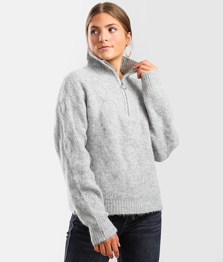 Bke Quarter Zip Mock Neck Sweater Women S Sweaters In Heather Grey Buckle